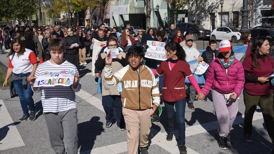 Trabajadores y trabajadoras que brindan servicios a personas con discapacidad se movilizaron en Santa Rosa para reclamar por la falta de pagos del gobierno nacional y expresar su rechazo a modificaciones impulsadas en la legislación vigente. La protesta se desarrolló alrededor de la plaza San Martín y reunió a prestadores, familias y personas con discapacidad.